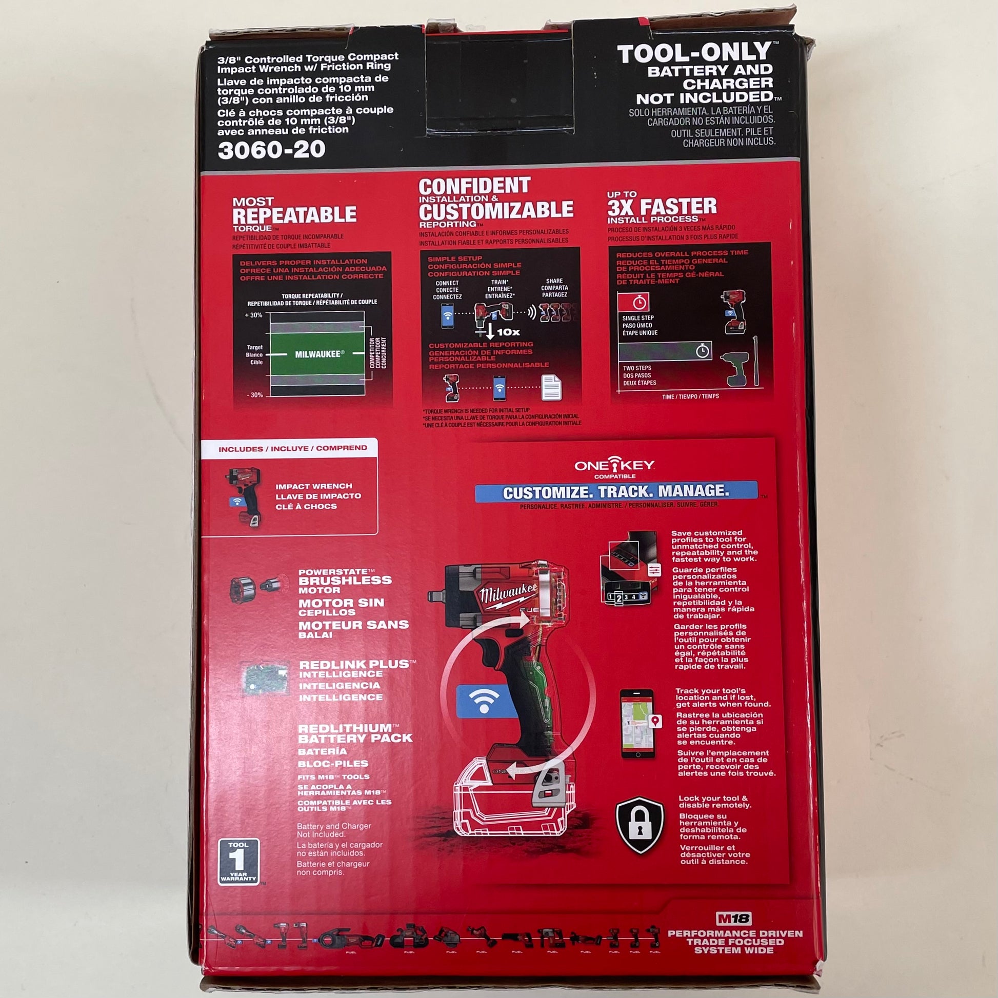 Milwaukee 3060-20 M18 18V 3/8" Friction Ring Controlled Torque Impact Wrench